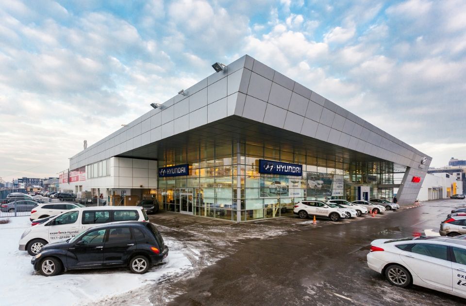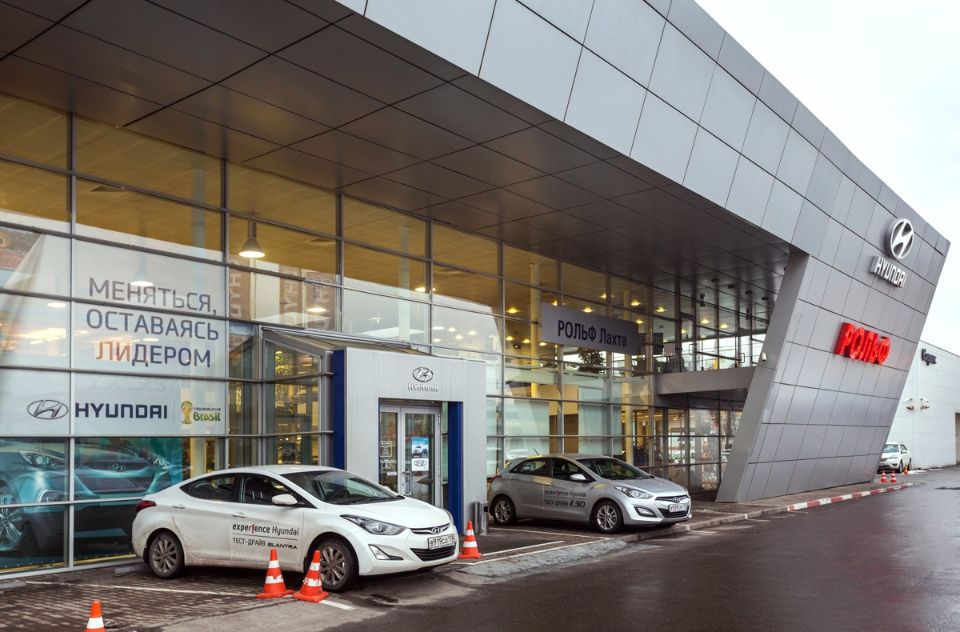 ROLF-Lakhta dealer center consists of three buildings, from which two have been constructed by the Kompakt, JSC.