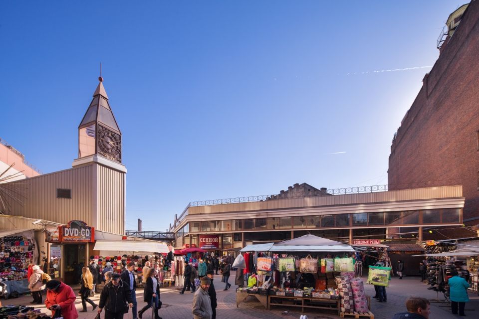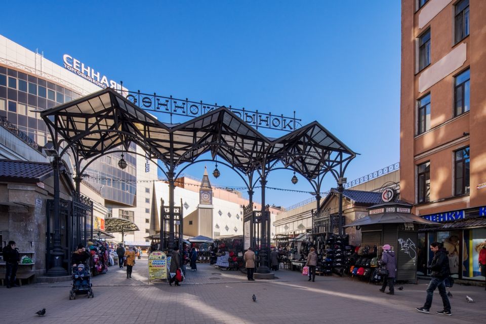 Сенной рынок – один из самых старых рынков в Санкт-Петербурге. В настоящее время это современный торговый комплекс, открытый после реконструкции в 1998 году. Строительство проводилось в условиях плотной городской застройки, а расположенные под Сенной площадью подземные склады и станции метро создавали непростую инженерную ситуацию. С учётом данных обстоятельств при возведении здания рынка вместо обычного фундамента была использована плавающая несущая плита. Также специалисты компании стремились максимально облегчить конструкцию и уменьшить нагрузку на основание, поэтому ограждающие конструкции зданий рынка были выполнены из сэндвич-панелей. Такой подход оказался единственно верным, и поэтому новый торговый комплекс органично вписался в архитектурную и историческую среду старинной городской площади.